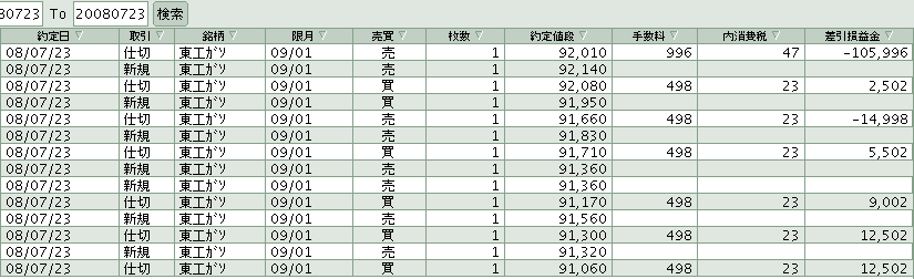 そこから下落がはじまり、結局92010円で損切り