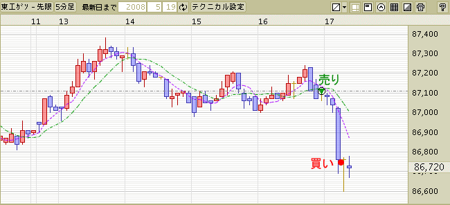 4時過ぎに大きく下げだしたので、昨日の再来を夢見て
