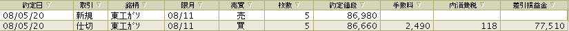 本日のデイトレ 1回のみで 収支は+77510円