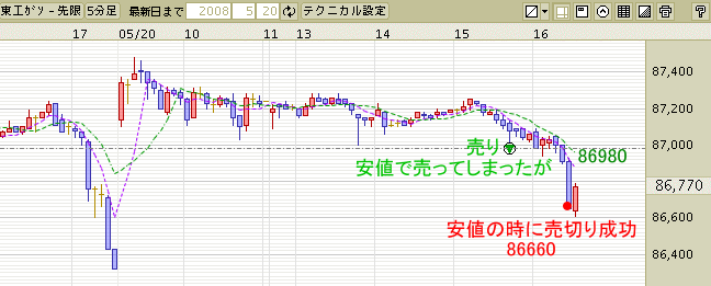 最後5時過ぎから再び下がってきたので、売りから入ったのが最悪