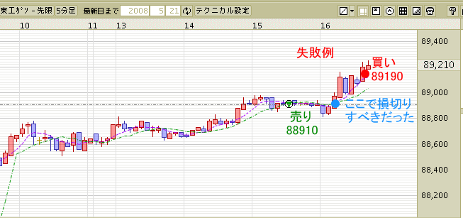 持ち直したところで買いから入り 再び損切り