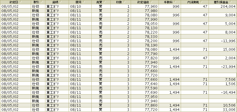 その後も 85900売りから入り 85970買い -7996とマイナス拡大