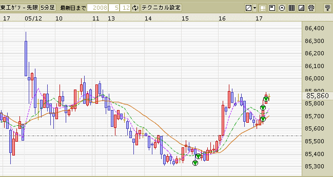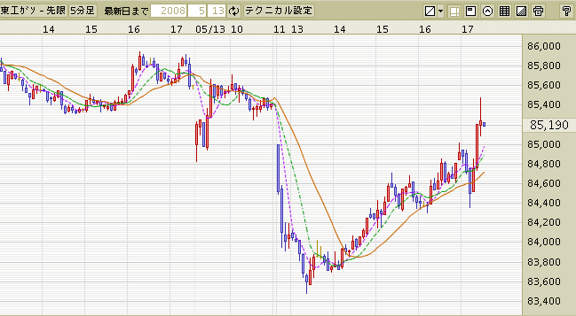ここから まだ下がると読んで前場安値付近で再び85440売りに入り、